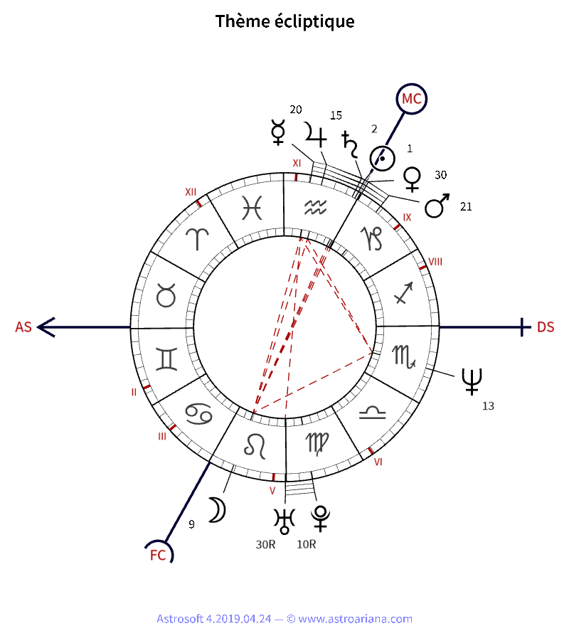 De leurs côtés, Jean-Louis et Nadine Trintignant subissaient également des transits dissonants sur leurs Lunes natales. Avec ce drame, c’est une famille, un cocon, un clan qui a littéralement explosé. Jean-Louis Trintignant subissait en juillet 2003 une opposition Uranus-Lune, une conjonction Pluton-Soleil, une opposition Saturne-Mercure et une opposition Neptune-Mars… Au moment de perdre sa fille, Nadine Trintignant subissait quant à elle une opposition de Saturne à sa Lune natale… Bref, une sorte de “tragédie lunaire” de bout en bout.