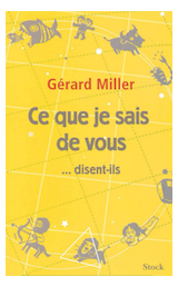 Jeudi, 18 h 20, sur Europe 1. Thème de l’émission : l’astrologie. Miller : “Il ne faut naturellement voir dans mon livre Ce que je sais de vous, paru chez Stock, 92 francs, qu’un pastiche. J’ai simplement voulu démontrer, avec humour, que l’astrologie est une connerie.” Jeudi soir, 23 heures, à Prise directe sur France 3. Thème de l’émission de Michel Field : l’astrologie. Miller : “Il ne faut blablabla… Stock, 92 francs.” Vendredi, 17 heures, sur LCI, Gérard Miller. Thème de l’émission de Daniela Lumbroso : l’astrologie. Miller : “Il ne faut blablabla… Stock, 92 francs.” Vendredi, 23 heures, à On ne peut pas plaire à tout le monde, sur FR3, Gérard Miller. Thème de l’émission : Gérard Miller. “Il ne faut blablabla… Stock, 92 francs”.